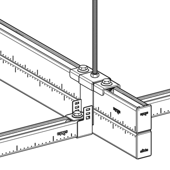 Der Mittelknoten IR-M wird im Zusammenhang mit Installationsrastern zur Erstellung eines Mittelknotens verwendet. In Kombination mit Montageschienen 41 und Endknoten IR-E lässt sich ein vollständiges Installationsraster ausbilden. Bei der Baukörperanbindung kann im Bedarfsfall mit der Rasterabhängung IR, welche eine y-Abhängung ermöglicht, gearbeitet werden.